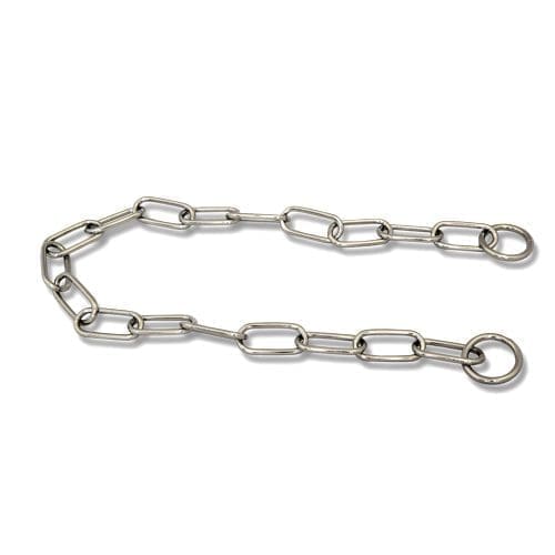 • A unique range of choke chains suitable for long haired dogs to reduce the pinching of the chain and pulling hair