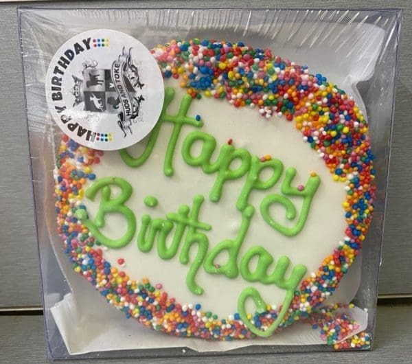 The Horse Birthday cake Cookies are based on a baked Molasses and Oats biscuit base and drizzled in a yummy sugar icing, hand decorated in sprinkles with an extra special Sugary Happy Birthday on top!!